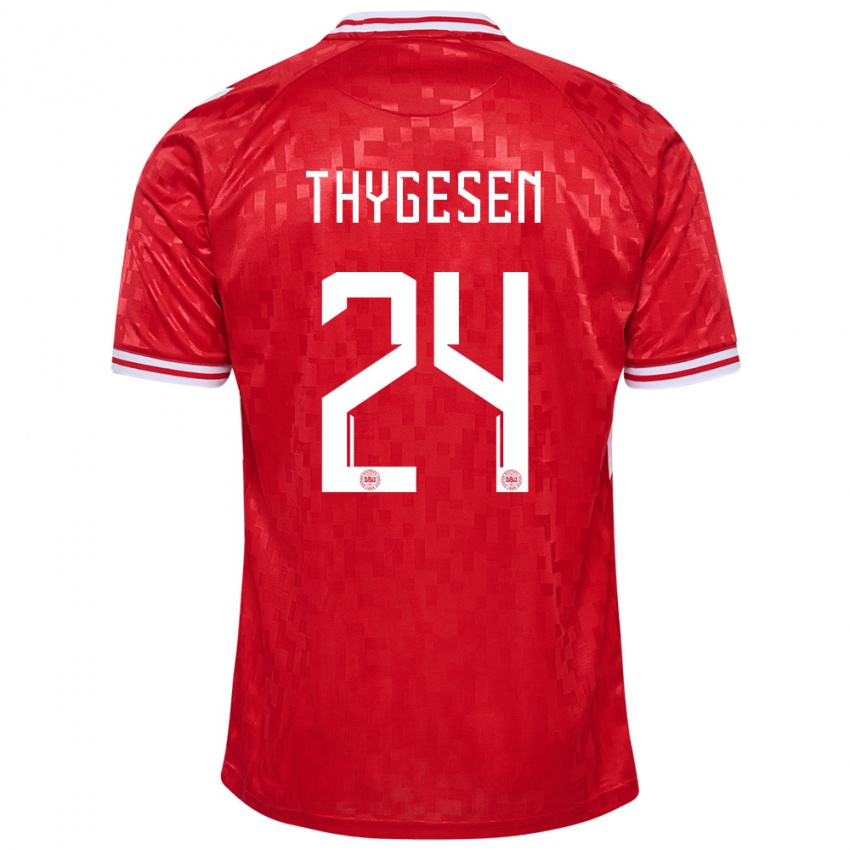 ילדים דנמרק שרה קתרין ת'יגסן #24 אָדוֹם ג'רזי ביתית 24-26 חולצה קצרה
