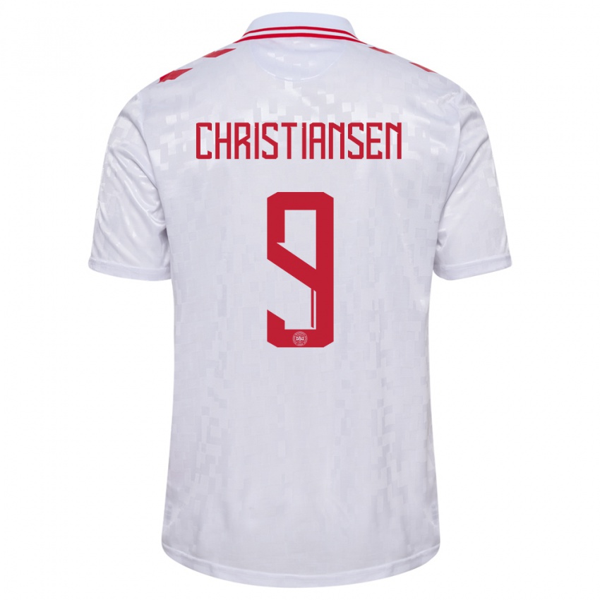 ילדים דנמרק ננה כריסטיאנסן #9 לבן הרחק ג'רזי 24-26 חולצה קצרה