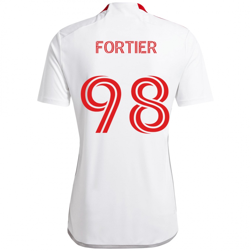 ילדים Kristjan Fortier #98 לבן אדום הרחק ג'רזי 2025/26 חולצה קצרה