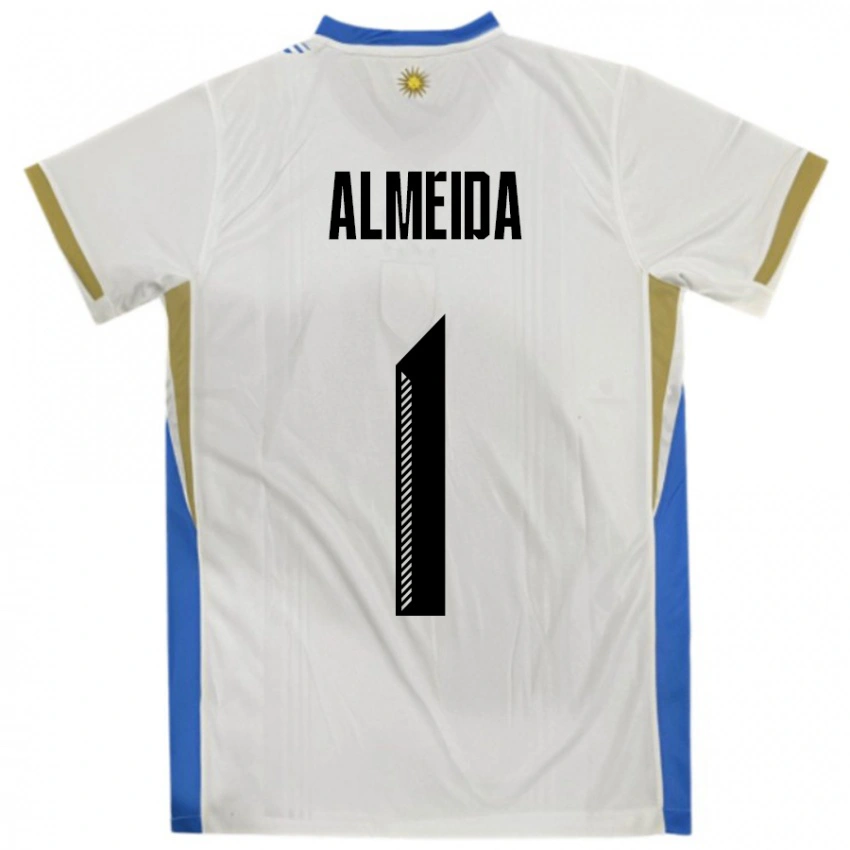 ילדים אורוגוואי מרטין אלמיידה #1 לבן כחול הרחק ג'רזי 24-26 חולצה קצרה