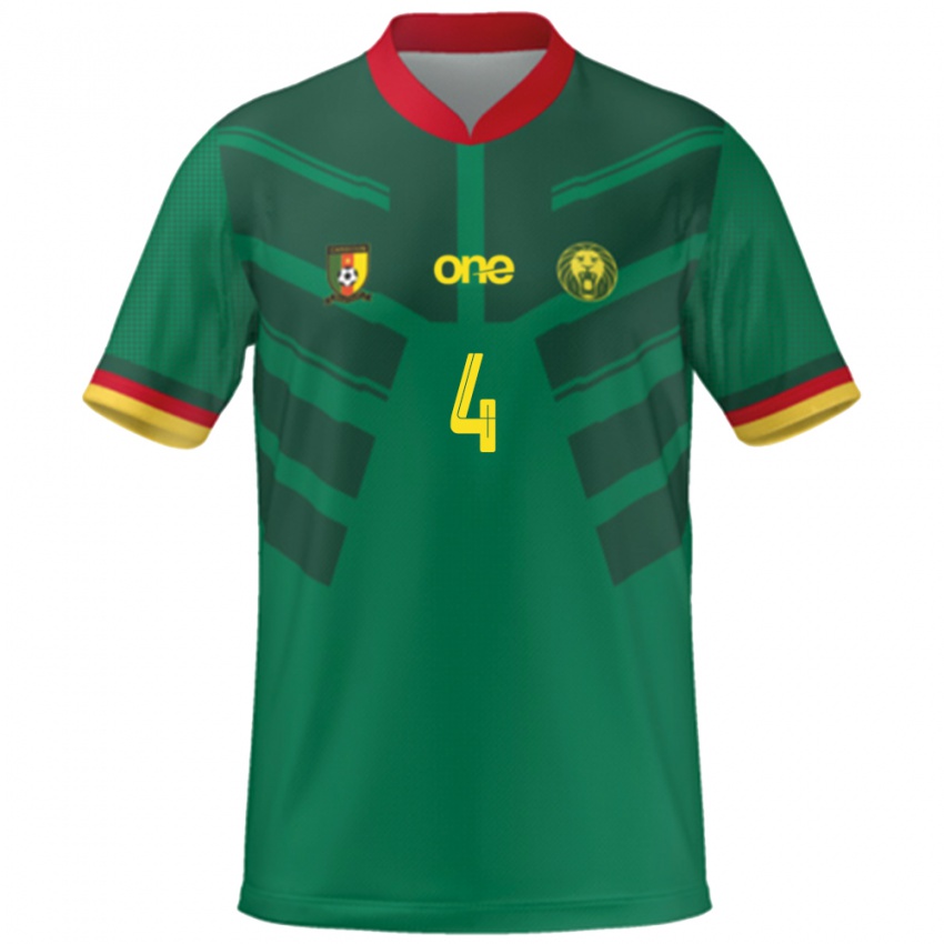 • נשים קמרון Junior Fouda #4 יָרוֹק ג'רזי ביתית 24-26 חולצה קצרה