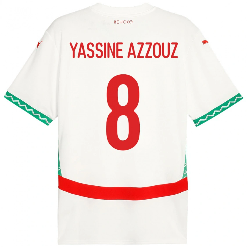 נשים מָרוֹקוֹ מוחמד יאסין אזאוז #8 לָבָן הרחק ג'רזי 24-26 חולצה קצרה