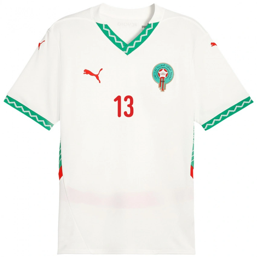 נשים מָרוֹקוֹ Yusuf Rabbaj #13 לָבָן הרחק ג'רזי 24-26 חולצה קצרה